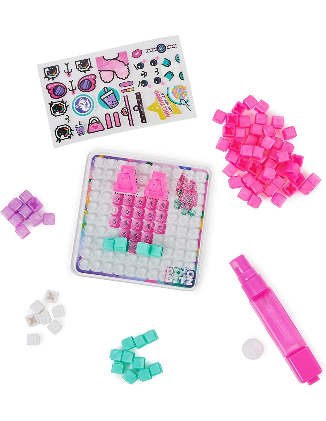 Scatena la tua creatività con il Pixobitz Metallic Pearl Pack! Questo pacchetto artigianale ha tutto ciò di cui hai bisogno per progettare le tue creazioni di pixel 2D e 3D che puoi mettere insieme con l'acqua. La confezione include 156 Bitz metallici (cubetti ad acqua) in quattro colori che non troverai da nessun'altra parte, due accessori, oltre 20 decorazioni per il trasferimento dell'acqua, uno spray facile da usare, un vassoio e due stencil.